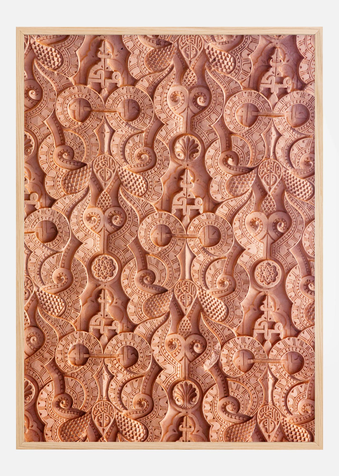 The colors in the motif stay within a palette of warm terracotta and clay, giving a natural and rustic feel to the image. The detailed pattern stands out well against the uniform background, creating a three-dimensional illusion that is both appealing and deep. This poster is perfect for those who appreciate art that catches the eye and invites closer study, and who value craftsmanship and tradition in their interior style.
