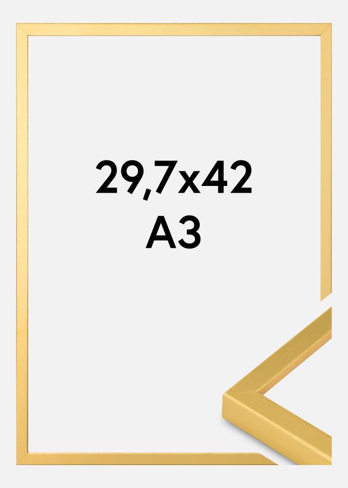 This photo frame is a perfect combination of elegance and modernity, making it an excellent choice for highlighting your favorite motifs. With a size of 29.7x42 cm (A3), it is perfect for displaying larger pictures or artworks. The gold-colored surface has a subtle shine and a slightly textured finish that gives an exclusive and sophisticated expression.