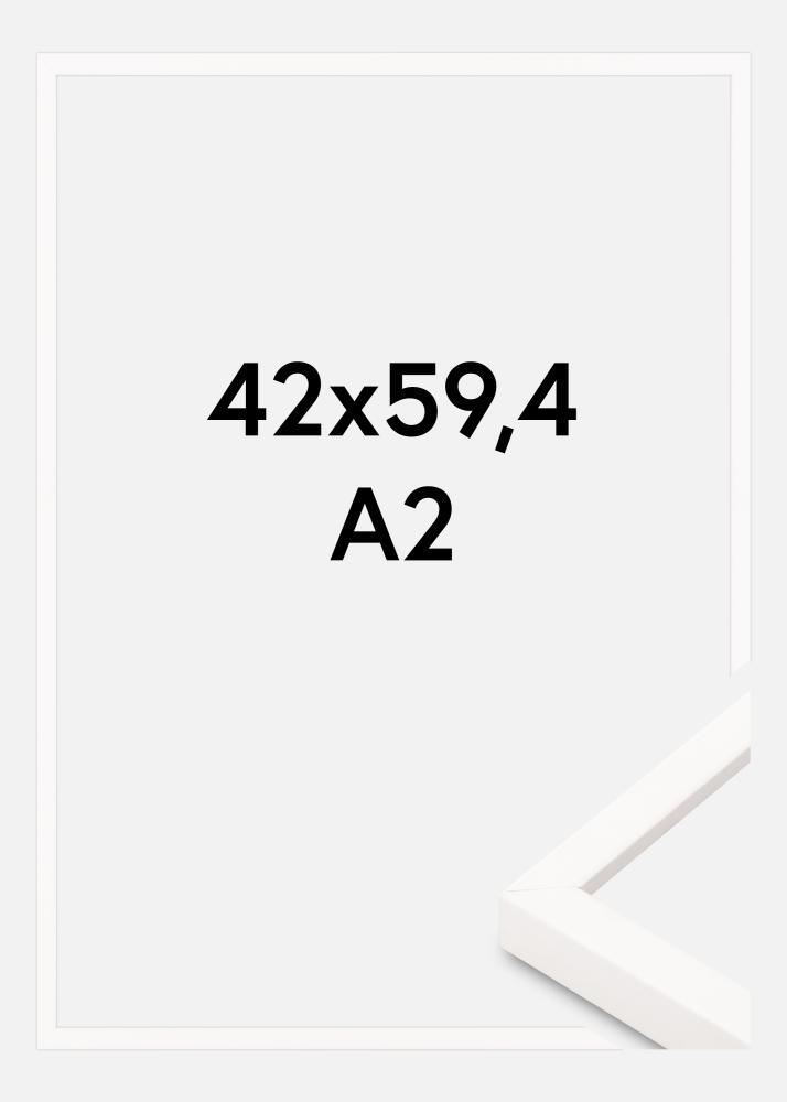This stylish photo frame in white color is perfect for highlighting your favorite motifs. With a size of 42x59.4 cm, it fits perfectly for A2 format, making it ideal for larger pictures or posters. The elegant and minimalist design with a thin, smooth profile gives a stylish impression that blends into most interiors.