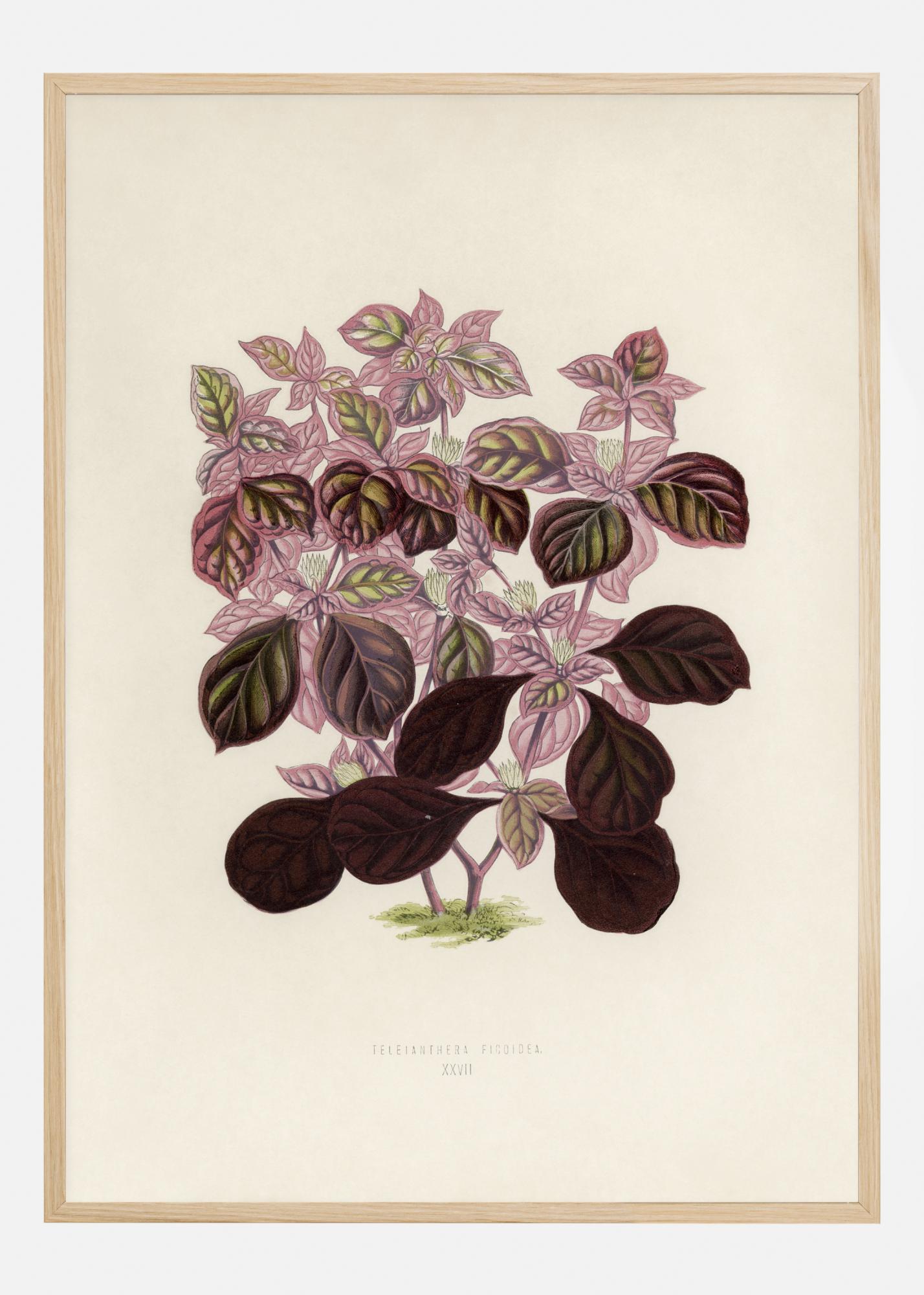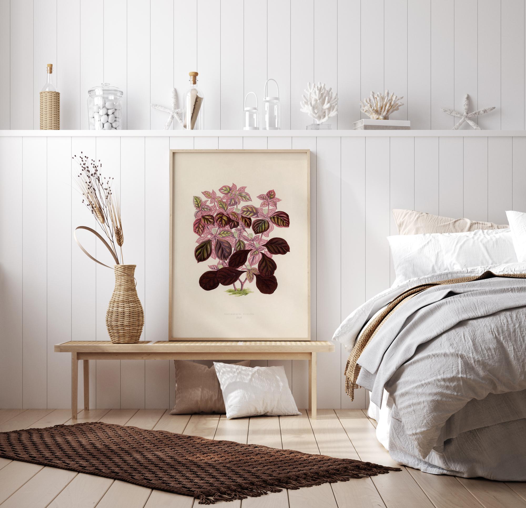 A beautiful handprint of two pink plectranthus scutellarioides. The soft beige coloured background enhances the beautiful shades of pink and green. Towards the root of the plant, the burgundy coloured create a sense of warth to the print. Add this print to your art collection at home.