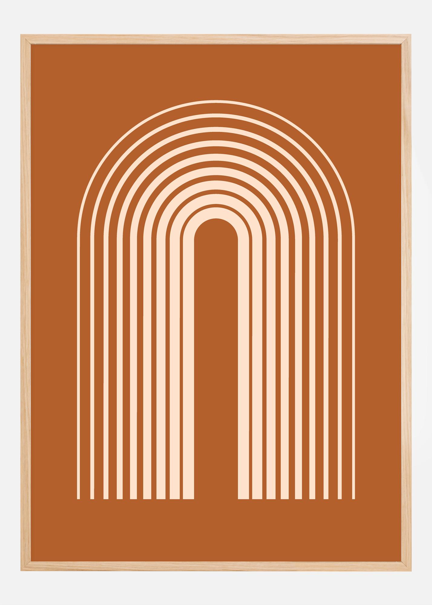 This poster with an abstract half-arch pattern is a tribute to modern art and design. The pattern appears as a series of perfectly symmetrical arches in warm, tonal colors that provide a calming and rhythmic visual expression. The steadily darker terracotta background offers a deep and rich landscape for the lighter lines to stand out from, creating a dynamic contrast that captivates the eye.