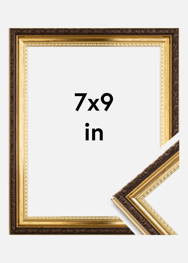 Are you looking for a beautifully decorated frame in an older style? Abisko Acrylic Glass Gold is a substantial gold frame with incredibly stylish ornaments. The frame's 25 mm wide strip has a glossy gold colour with a decorated brown border in the middle. The gold part is also decorated, with a wavy pattern closest to the glass.