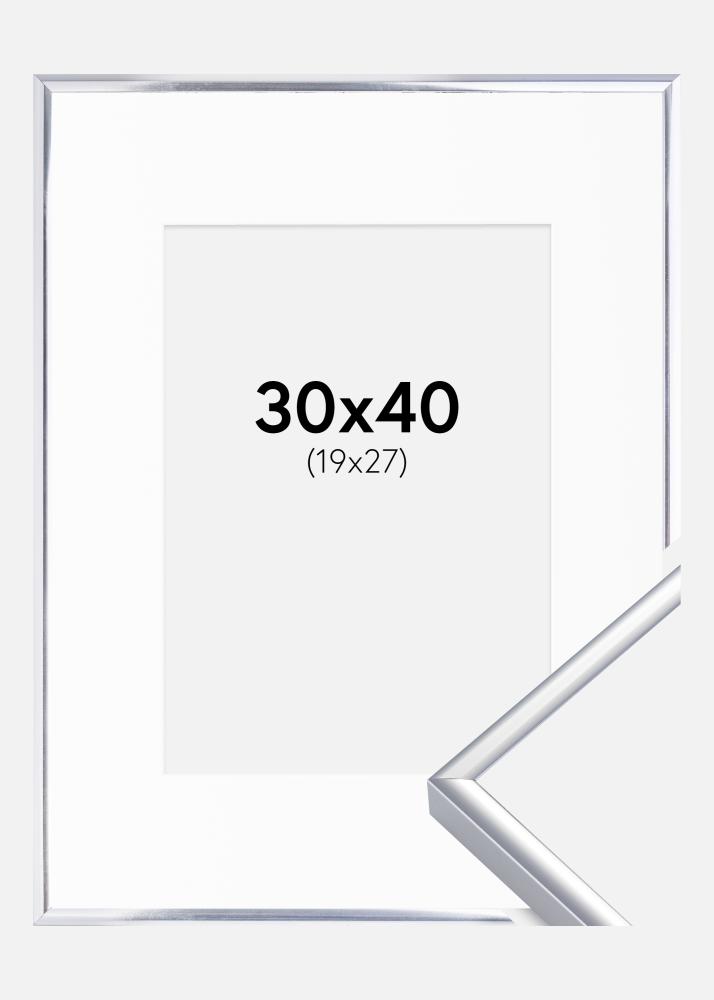 Frame Aluminium Shiny Silver 30x40 cm - Picture Mount White 20x28 cm