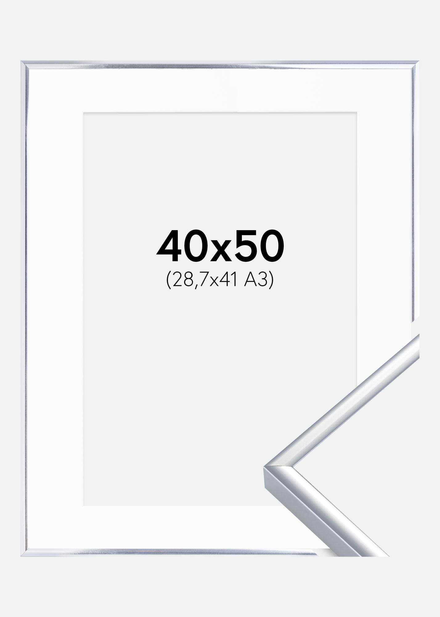 Frame Aluminium Shiny Silver 40x50 cm - Picture Mount White 29,7x42 cm (A3)