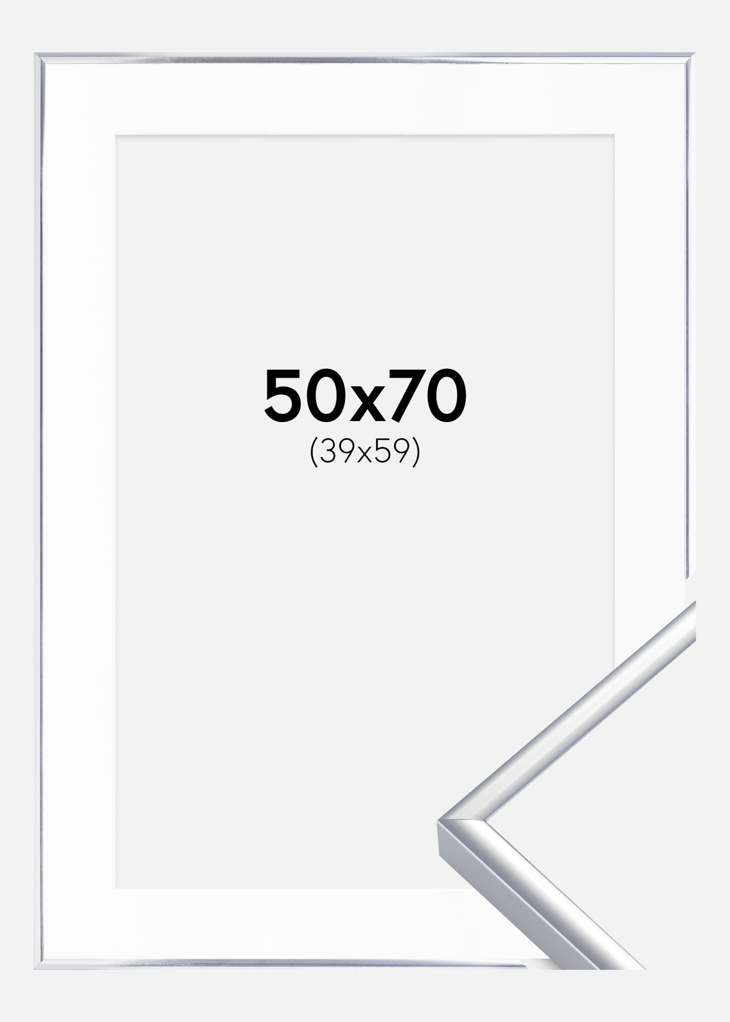 Frame Aluminium Shiny Silver 50x70 cm - Picture Mount White 40x60 cm