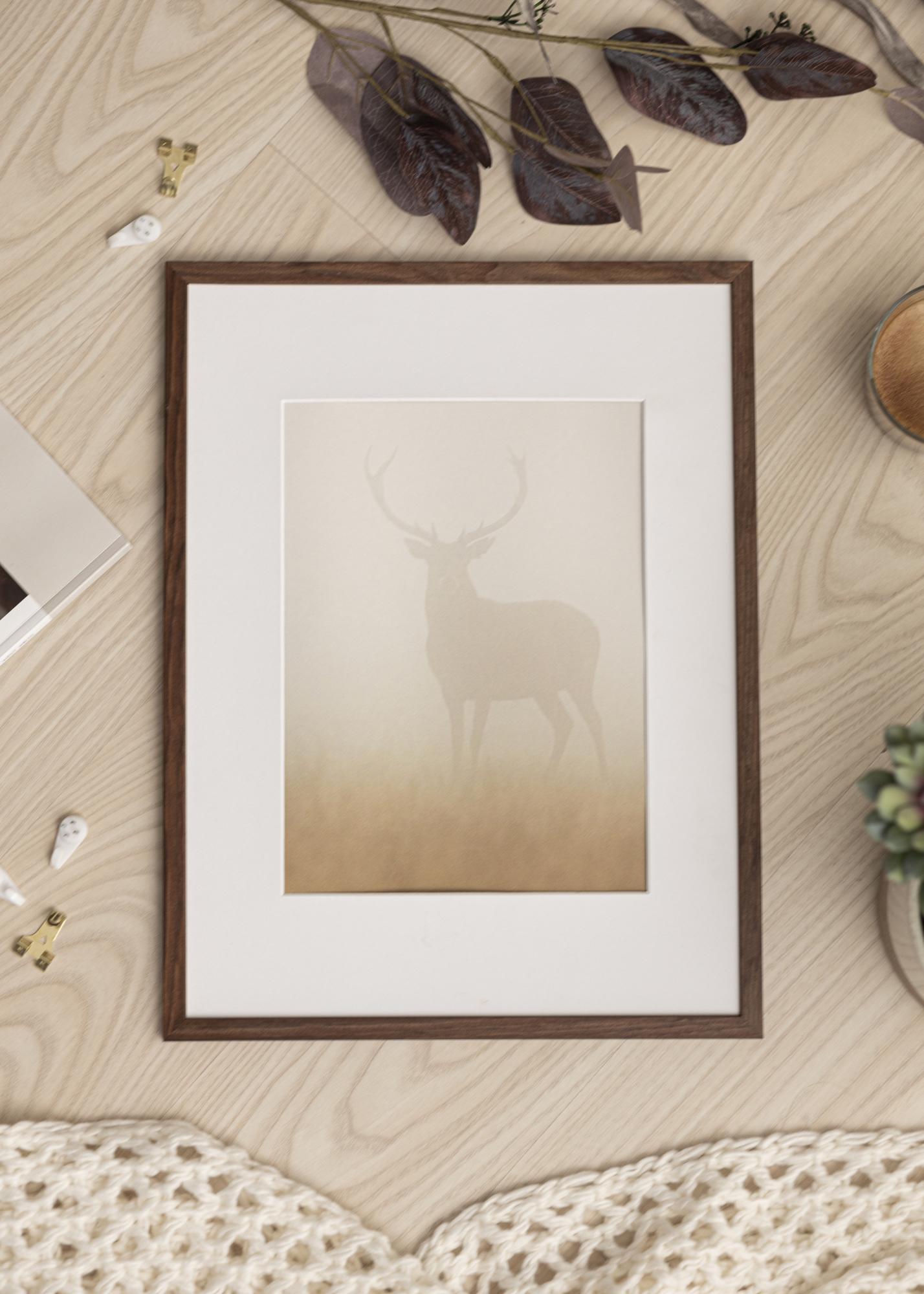 Galant is a classic walnut colored photo frame with a width of 13 mm. This frame is a great choice if you want a darker wood frame that highlights its framed piece. An authentic wood frame is always a good choice!