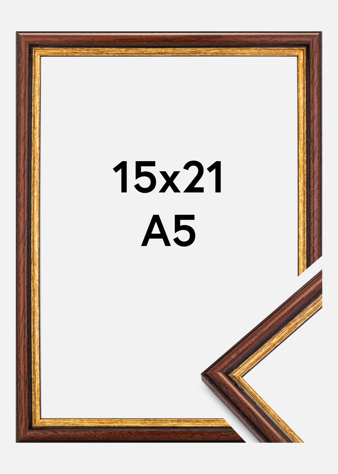 Discover the timeless elegance of our 15x21 cm (A5) photo frame, a classic beauty that enhances your memories with its warm brown tone and distinct gold edge. This picture frame is not only a visual gem but also practical, thanks to its versatile metal hanger that allows for both landscape and portrait orientation.