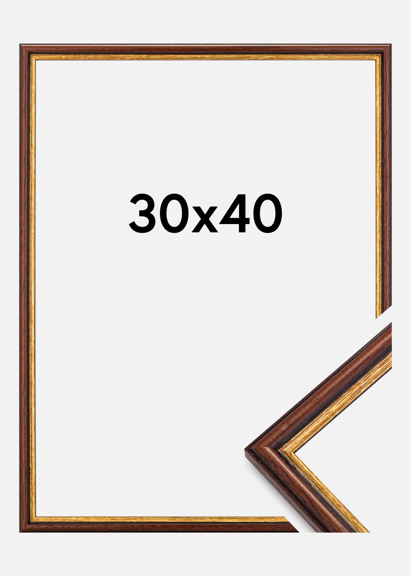 Discover the elegance and timeless design of our 30x40 cm classic photo frame in brown, adorned with a subtle gold border that highlights your chosen motif. This picture frame is not only a stylish interior detail but also a practical choice for preserving your memories.