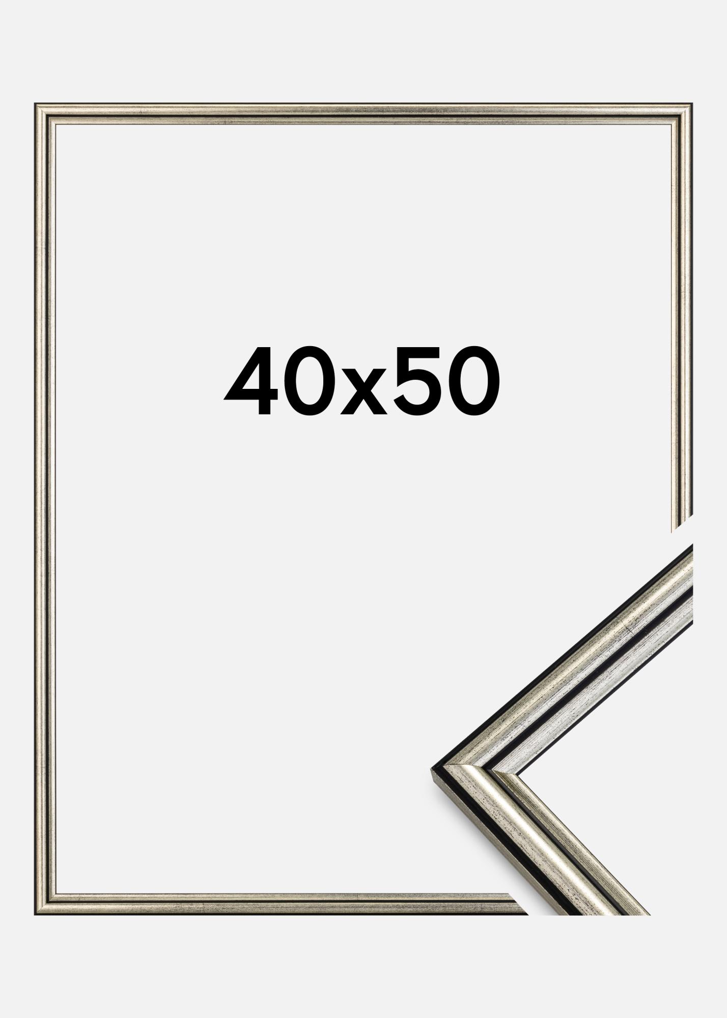 Discover the elegance of simplicity with our 40x50 cm silver frame, perfect for showcasing your favorite pictures or artwork. This photo frame features a distinct design with black speckled details and black lines that create a sophisticated impression without being overpowering.