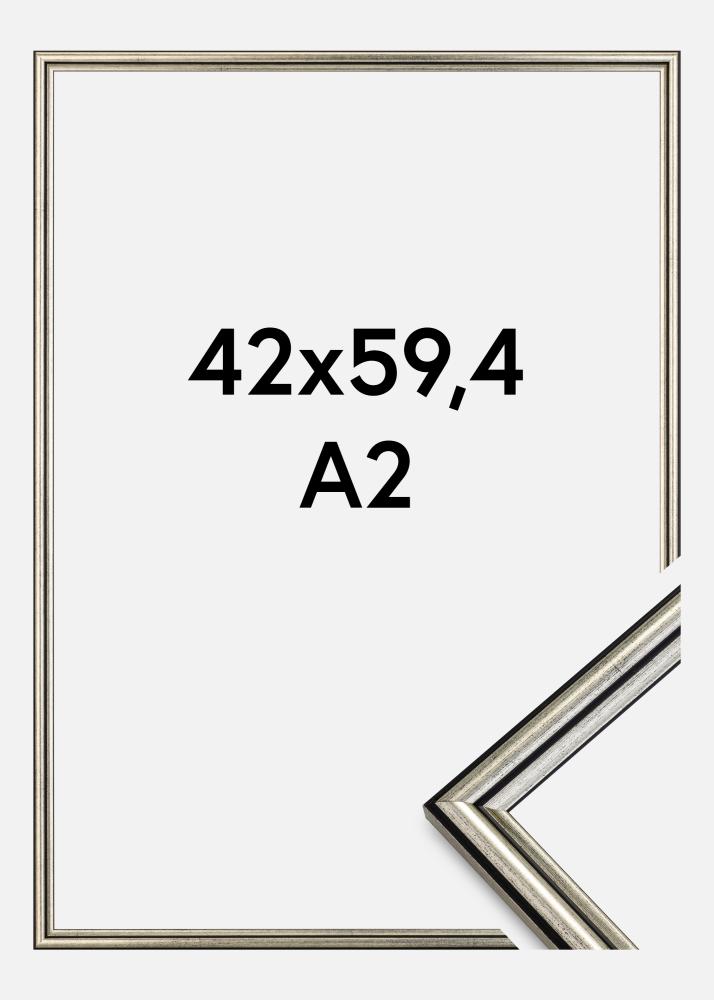Discover the elegance and modern design with our 42x59.4 cm (A2) silver frame, perfect for showcasing your favorite artwork or photographs. This photo frame is a stylish detail in any room with its subtle black speckles and decorative black lines that provide a unique depth and character.