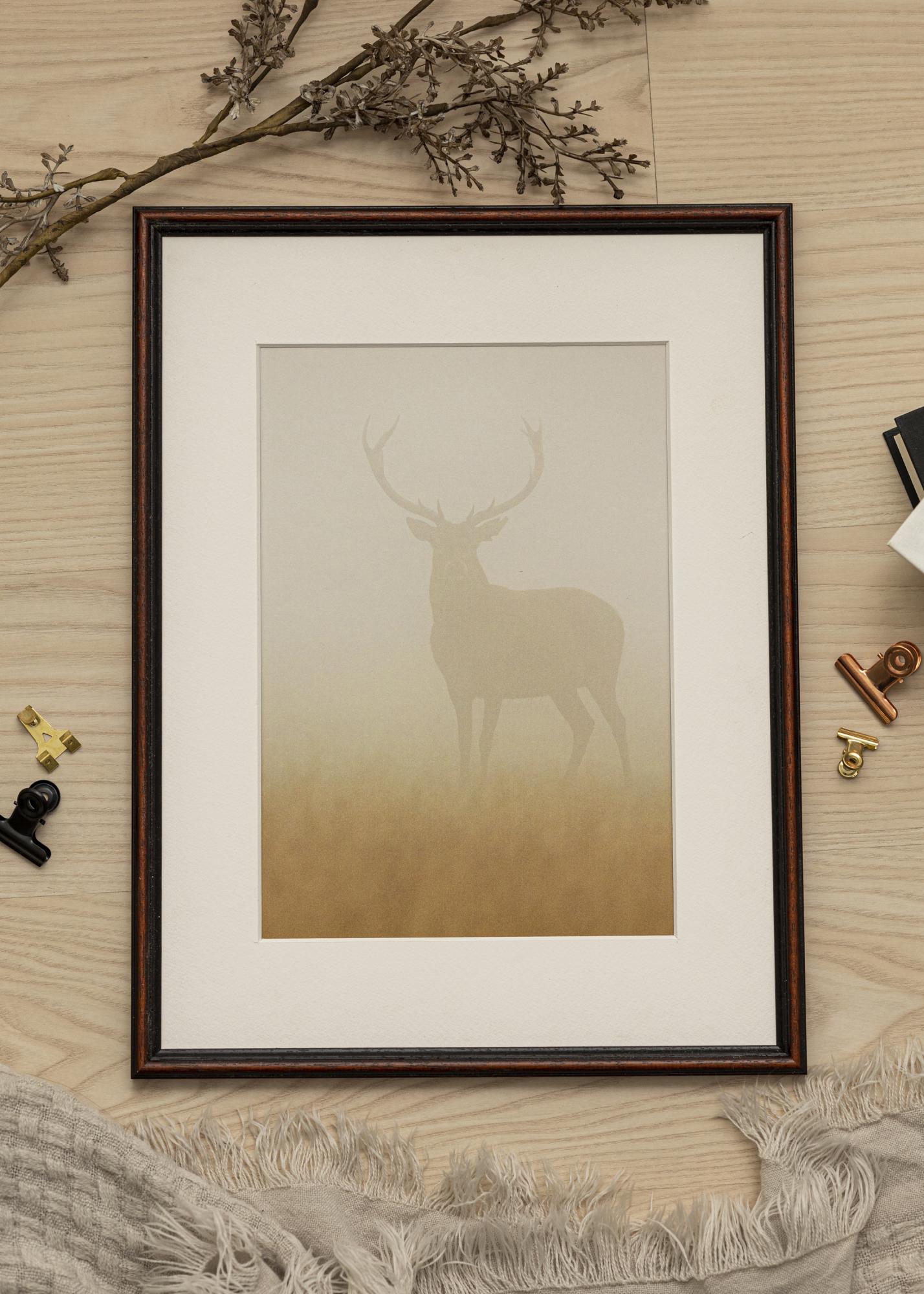 The frame's 15 mm wide Ayo wood frame provides a sturdy and stylish frame, while the 14 mm deep profile adds a distinctive and attractive look to the wall. The matte finish complements the walnut pattern and creates a warm and welcoming feeling in the room.