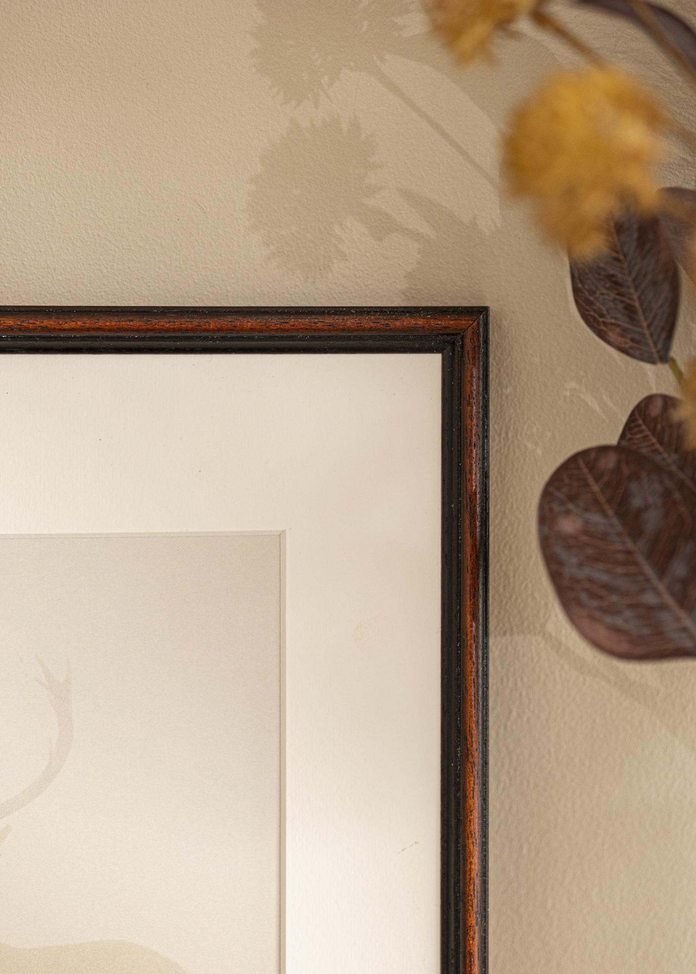 Made in Sweden with ayo wood, this frame combines durability with style. It has a matte surface that complements the warm walnut pattern and gives a sophisticated impression. The frame's width is 15 mm and depth is 14 mm, providing a discreet yet present feeling to your framed image.