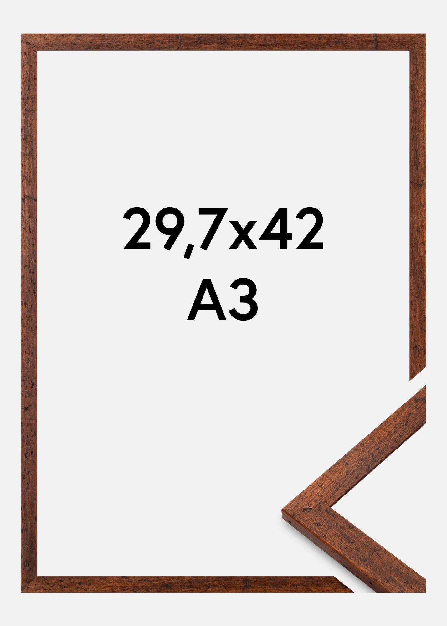 This beautiful photo frame in the size of 29.7x42 cm is a perfect combination of rustic charm and timeless elegance. Made of high-quality wood, the frame has a warm brown finish that highlights the natural wood grain. The subtle crack details give an authentic vintage feel, making it ideal for complementing both rustic and classical interiors. With a frame width of 13 mm and a depth of 34 mm, this picture frame offers a robust and stable framing for your favorite photographs or artworks.