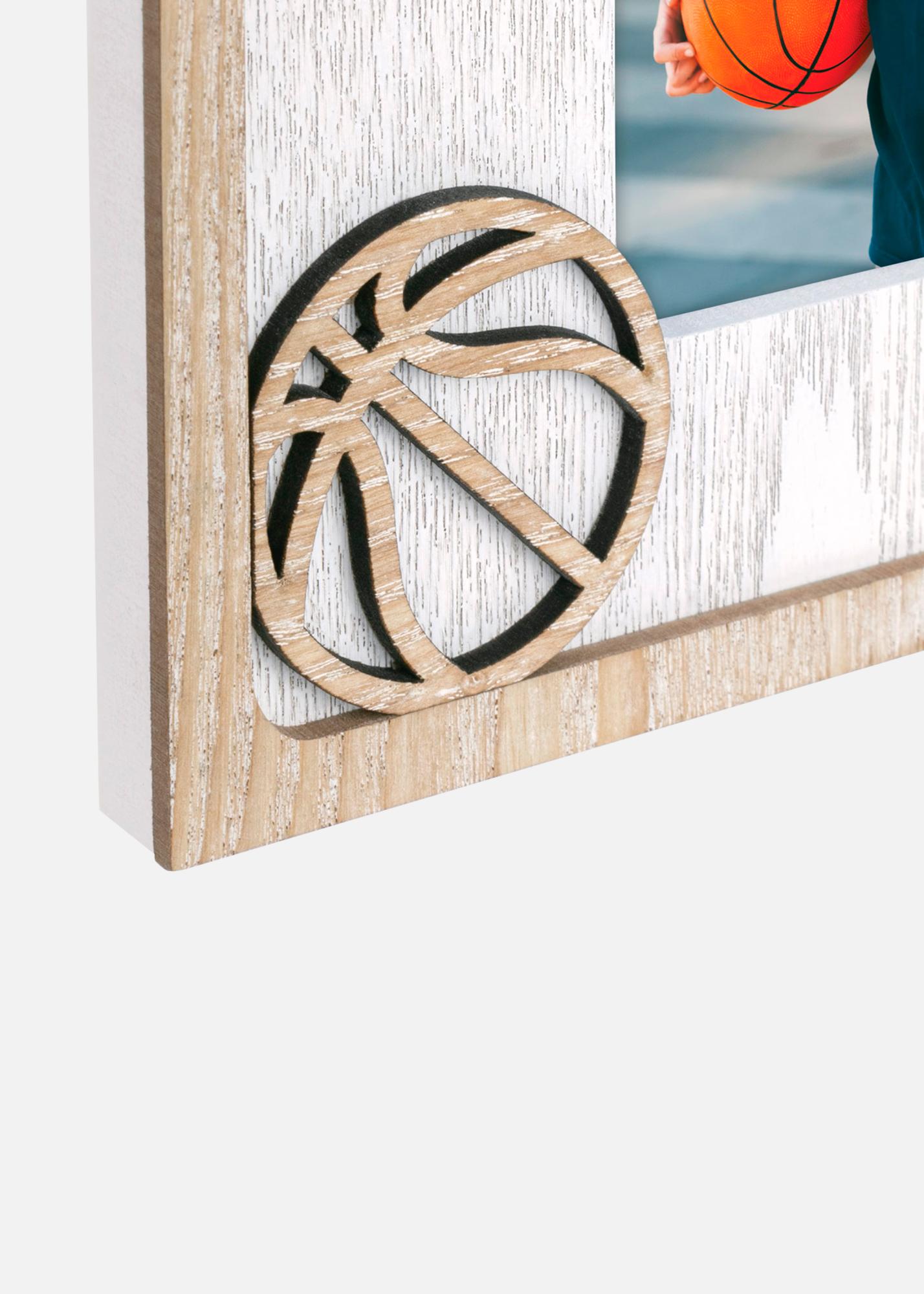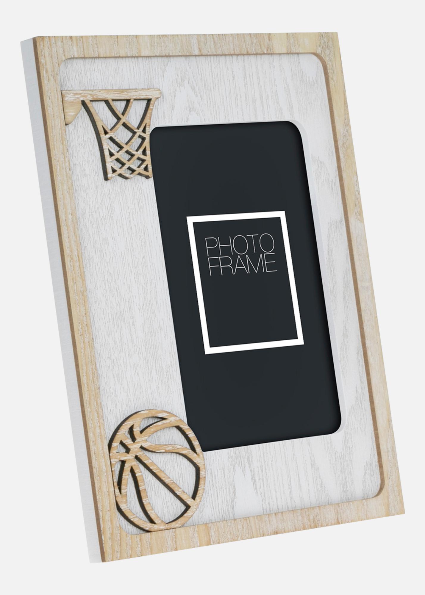 This photo frame has a sporty and playful design with a basketball theme, perfect for basketball enthusiasts and young athletes. The frame features cut-out details of a basketball hoop and a basketball, enhancing the thematic expression. The frame is suitable for photos in the size 10x15 cm, making it ideal for preserving memories from basketball practices, games, or other sports-related moments. A perfect gift for basketball lovers or as a personal decorative detail in a sporty room.