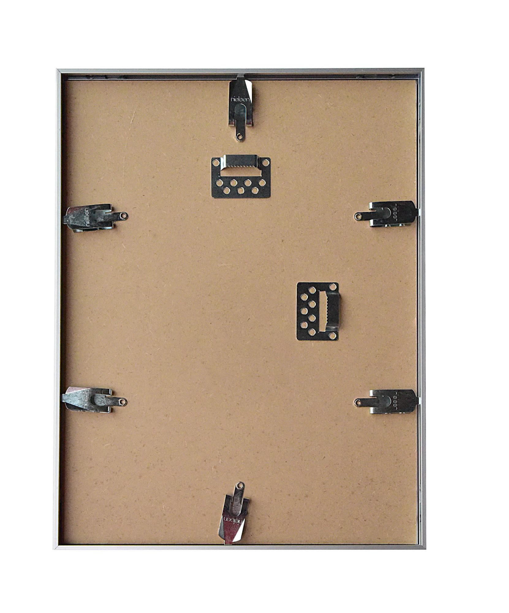 In this frame, the shirt or other item hangs freely on the supplied dark grey cardboard hanger. This means that the shirt is held safely within the frame and protected. The frame is in a matt black shade, is made of aluminium and has polystyrene plastic glass. The frame measures 60x80 cm and is 22 mm deep which gives adequate space to store objects up to a depth of 2 cm. The frame is easily opened from the back with rotating metal clips attached to the MDF backing board.