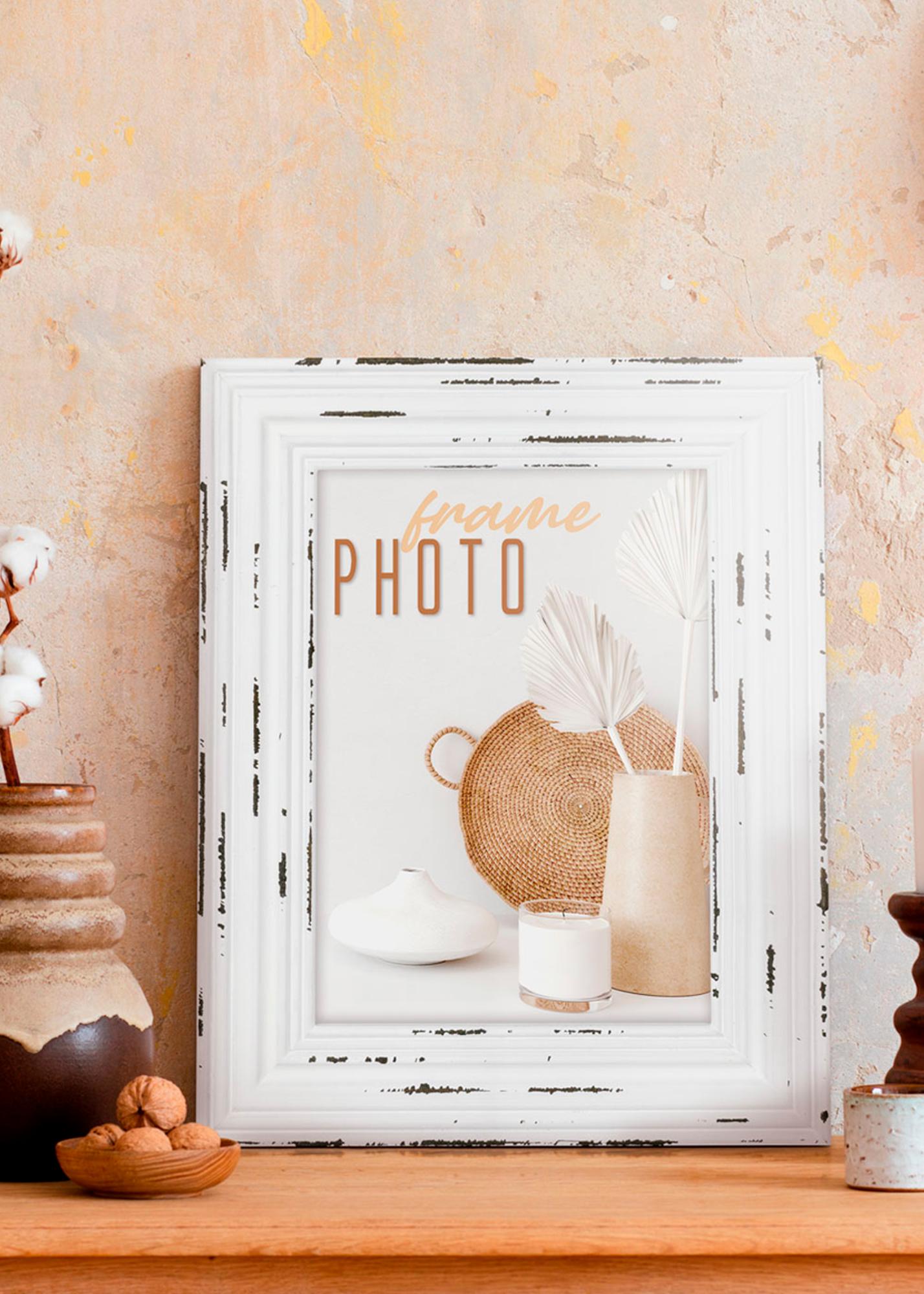 Give your memories a unique framing with this charming vintage-style photo frame. With its dimensions of 15x20 cm, it is perfect for showcasing your favorite pictures. The distressed white surface, complemented by dark accents, gives an authentic feeling of times past and adds character to your interior.
