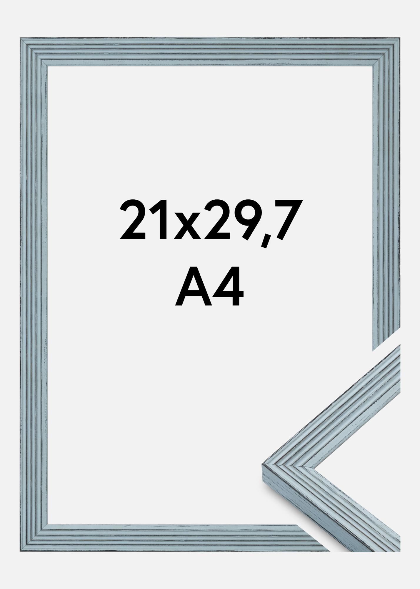 This stylish photo frame in size 21x29.7 cm (A4) is a perfect combination of elegance and functionality. Made from high-quality wood, it has a beautiful gray-blue finish with a subtle grain that gives a vintage feel. The profiled design with fine lines along the edges creates a timeless and sophisticated look, making it ideal for both classic and modern interiors.