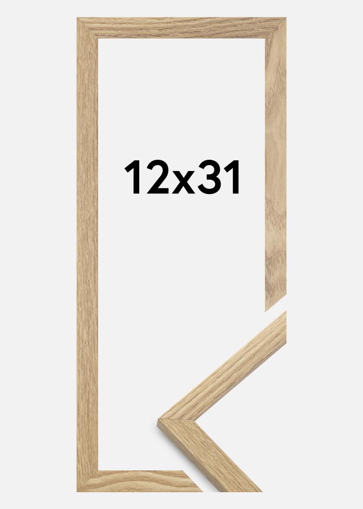The frame is made from MDF material wrapped with an oak style finish and has a slender frame profile of 14 mm. There is plenty of room to complement your images with an elegant passepartout or mount as the frame has an inner depth (rabbet) of 12 mm.