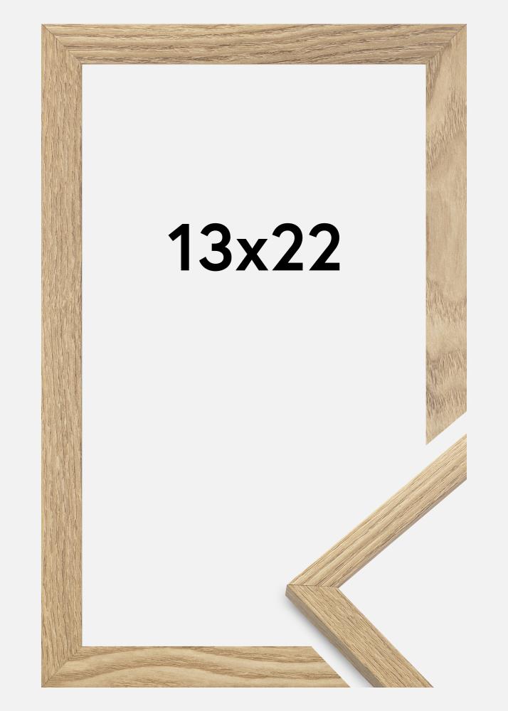 The frame is made from MDF material wrapped with an oak style finish and has a slender frame profile of 14 mm. There is plenty of room to complement your images with an elegant passepartout or mount as the frame has an inner depth (rabbet) of 12 mm.