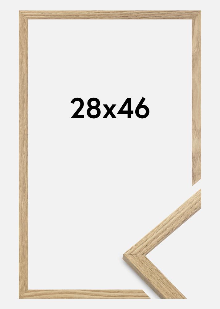 The frame is made from MDF material wrapped with an oak style finish and has a slender frame profile of 14 mm. There is plenty of room to complement your images with an elegant passepartout or mount as the frame has an inner depth (rabbet) of 12 mm.