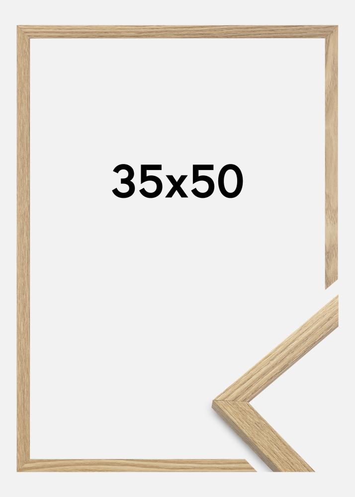 The frame is made of MDF material with a foil-coated oak-coloured surface and has a thin frame profile of 14 mm. There is plenty of space to complement your pictures with a luxurious passe-partout, thanks to the frame's inner depth (rebate depth) of 12 mm.