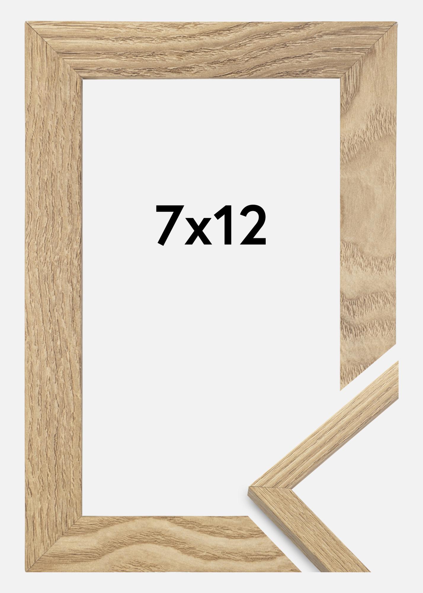 The frame is made from MDF material wrapped with an oak style finish and has a slender frame profile of 14 mm. There is plenty of room to complement your images with an elegant passepartout or mount as the frame has an inner depth (rabbet) of 12 mm.