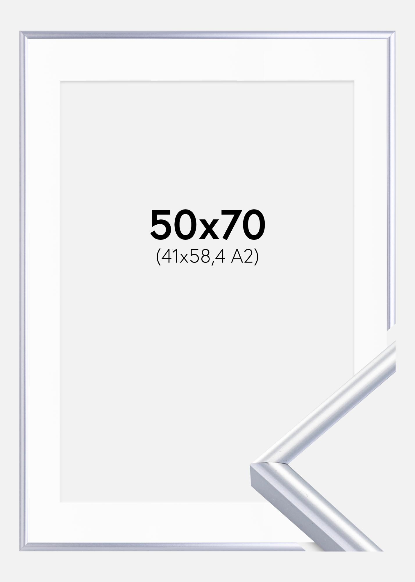 Frame Victoria Silver 50x70 cm - Picture Mount White 42x59.4 cm (A2)