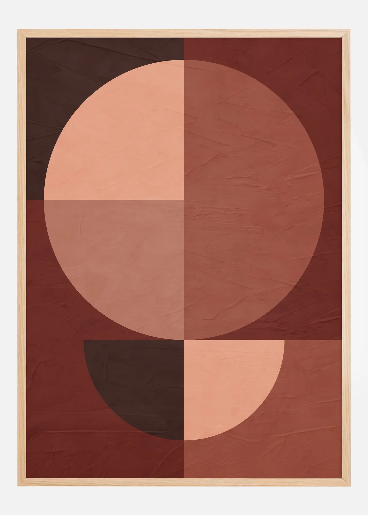 This abstract poster consists of an arrangement of geometric shapes and powerful red shades that create a captivating visual effect. The overlapping circles of different sizes and color tones, from deep burgundy to lighter terracotta, create a depth and dimension that is both dynamic and harmonious. This design is a stylish tribute to both the simplicity and complexity of modern art.