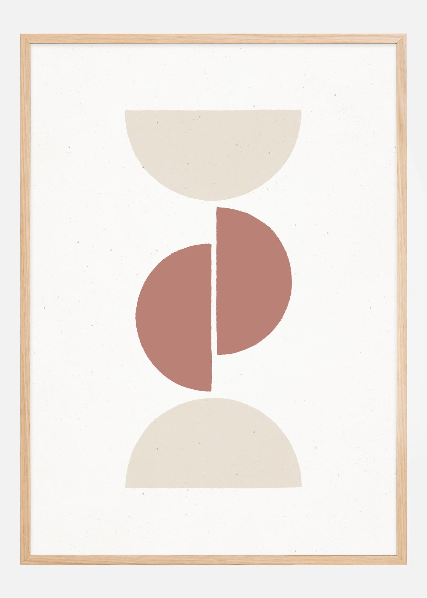 This artistic poster, titled 'Rust and Sand - Geo', features a composition of abstract geometric shapes in a harmonious balance of earthy colors. The design combines crescents and circle segments in rusty reds and sandy shades that highlight each other and create a sense of space and balance. It is a stylish and modern interpretation of geometric minimalism that fits perfectly in a Scandinavian or contemporary interior.