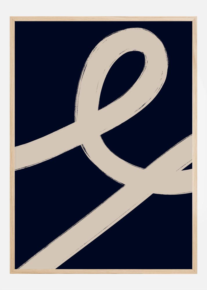 This minimalist and contemporary poster captures the essence of Scandinavian design with its clean and simple composition. A large, beige winding line shape plays against a deep blue background, creating an image that is both calming and visually interesting. The contrast between the two elements is sophisticated and provides a strong graphic effect that highlights the beauty of abstract art.