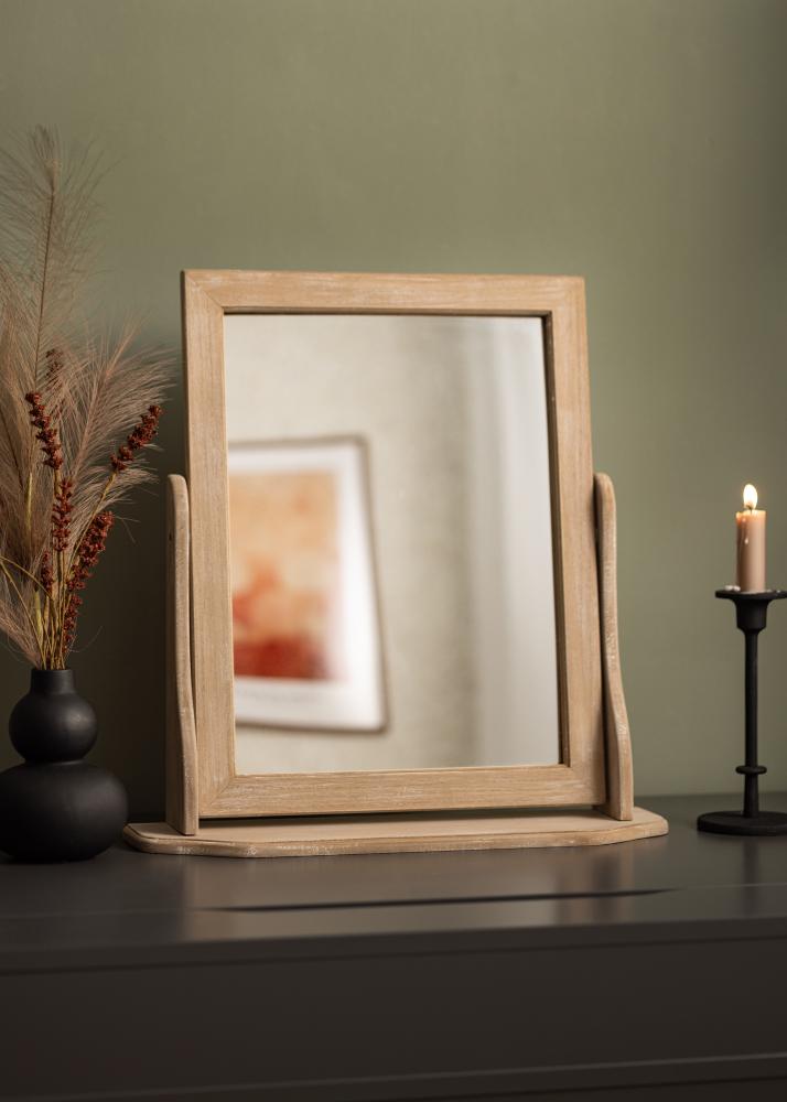 The mirror stands firmly on a sturdy base, designed to be placed on a dressing table or chest of drawers. The rectangular shape is classic and adds a soft touch to the room, while the clear reflection ensures that you see yourself in the best possible light.