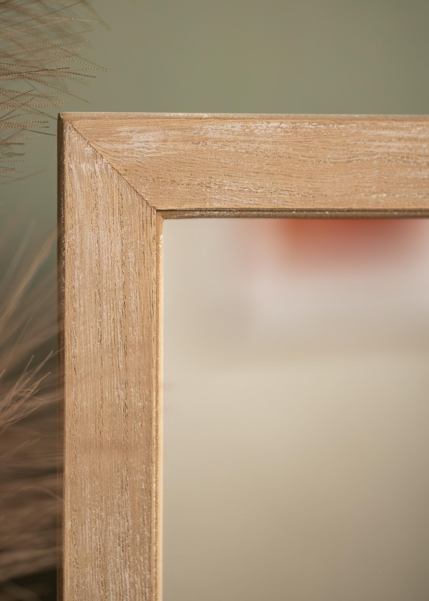 This charming makeup mirror is an elegant and functional addition to your home. With its dimensions of 46x47x12 cm, it offers a generous surface to facilitate your daily beauty routines. The light wood-colored frame provides a natural and warm feeling, making the mirror easily blend in with various interior styles.