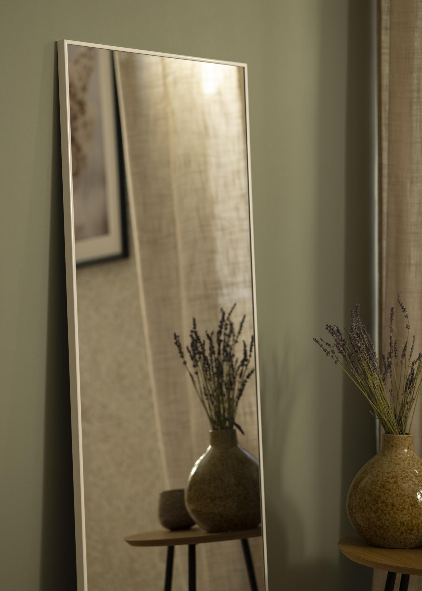 This mirror is designed to be hung vertically, making it ideal for capturing your full length. It is perfect for daily routines or as a last-minute check before stepping out the door. The white frame contributes to a fresh and clean feeling in the room, and its minimalist design ensures it complements various interior styles.