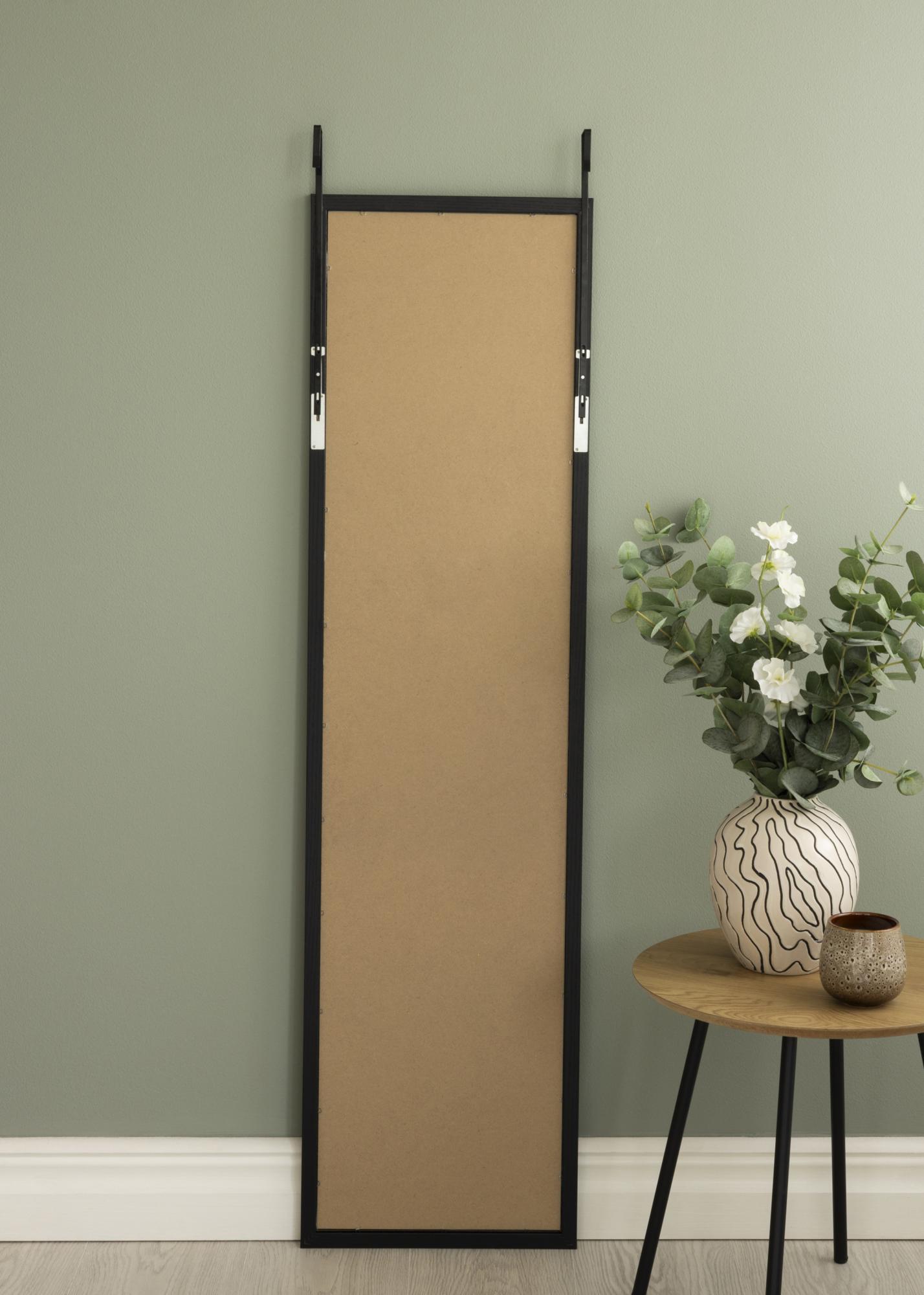 This door Mirror features a slim, modern wooden frame in Black, offering a warm and natural look. The matte finish gives the Mirror a subtle presence while adding texture and character to your room.