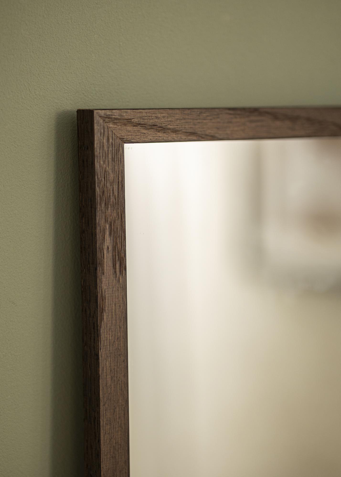 The frame of the mirror is made of genuine oak wood and has a deep dark oak color that immediately catches the eye. The thickness of the frame contributes to a feeling of solidity and gives the mirror a striking presence on the wall. Not only is this mirror a practical accessory, it is also a work of art that complements and enhances your interior.