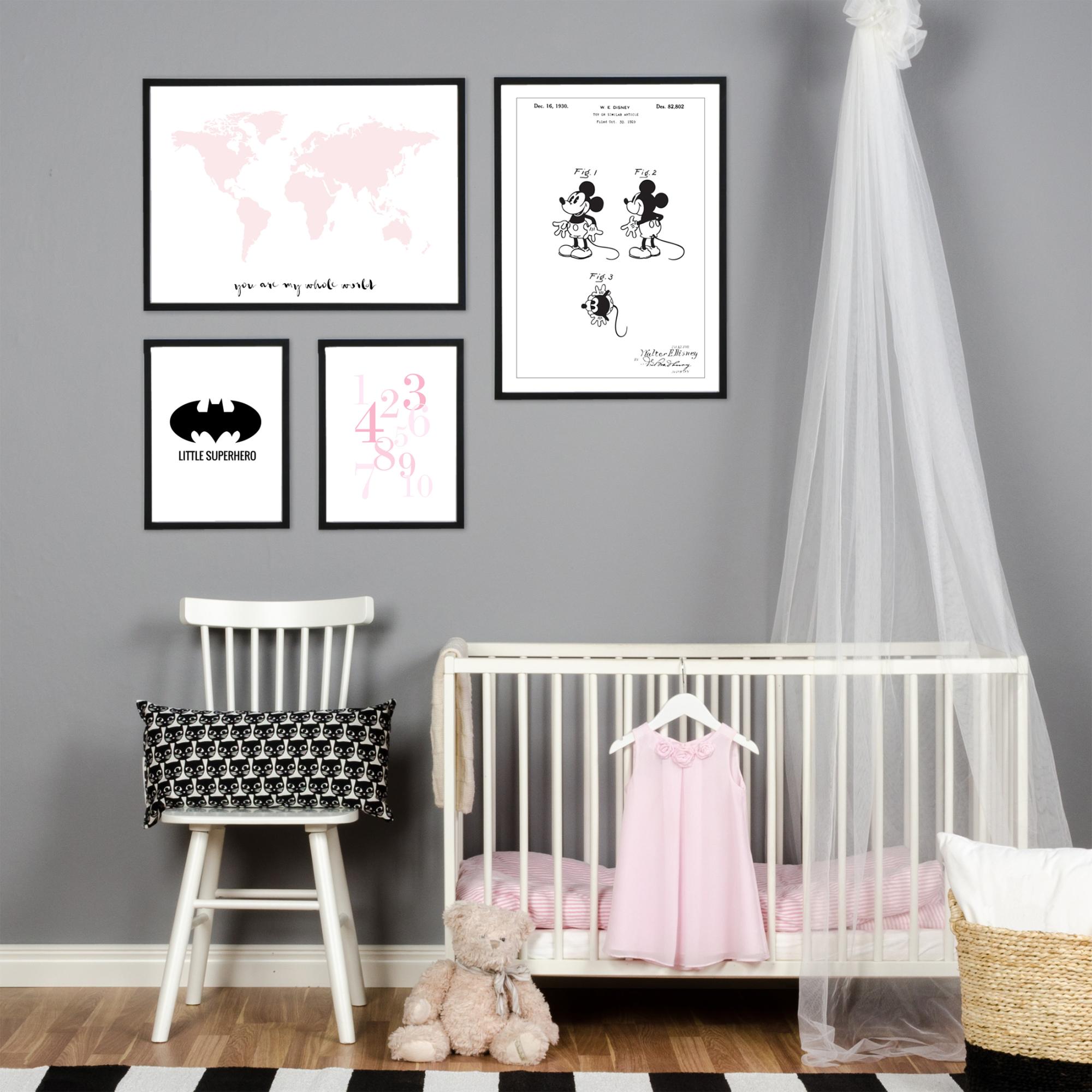Nanananananananana Batman! Superhero posters for all the little bats to decorate their room with. The graphically black and white illustration, with a sleek typeface, fits into all interior styles but is of course best suited for damp caves. Combine the poster with any of the other prints in the same style to create a series - Dino Favorite, Elefant Dream, Hund Little, Superhero or Kanin Happy.