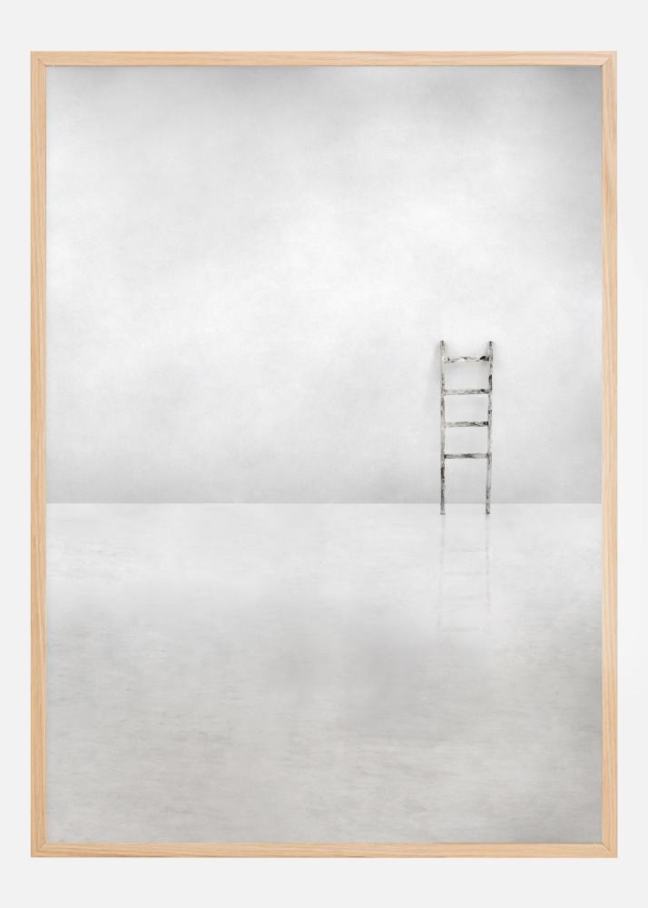 A minimalist poster of a ladder leaning up against a white background. Dubbed the Social Ladder, this solitary set of steps is also set against a white floor. Both the wall and the floor are the same white and grey tones leaving the ladder sharply defined in darker tones. Have fun interpreting the meaning of this image.