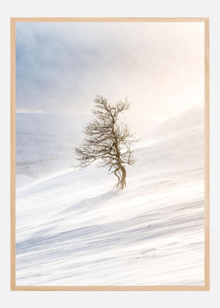 This atmospheric poster depicts a solitary tree in a snow-covered winter landscape, where the wind sweeps across soft snowdrifts and the light creates a dreamy, tranquil feeling. The motif has a minimalist style, making it perfect as a poster or print in modern homes, Nordic interiors, and rooms where you want to create harmony and calm. The pared-back landscape makes it easy to combine with other posters in a gallery wall.