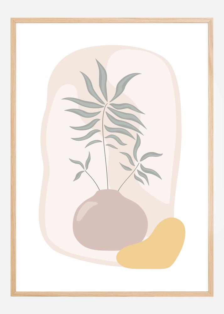 A stylised poster of a vase with a green plant popping out of it. Other strange shapes and colours fill the background to make this an interesting yet somewhat abstract piece. Match with a similar style drawing to create a mini gallery of your own at home.