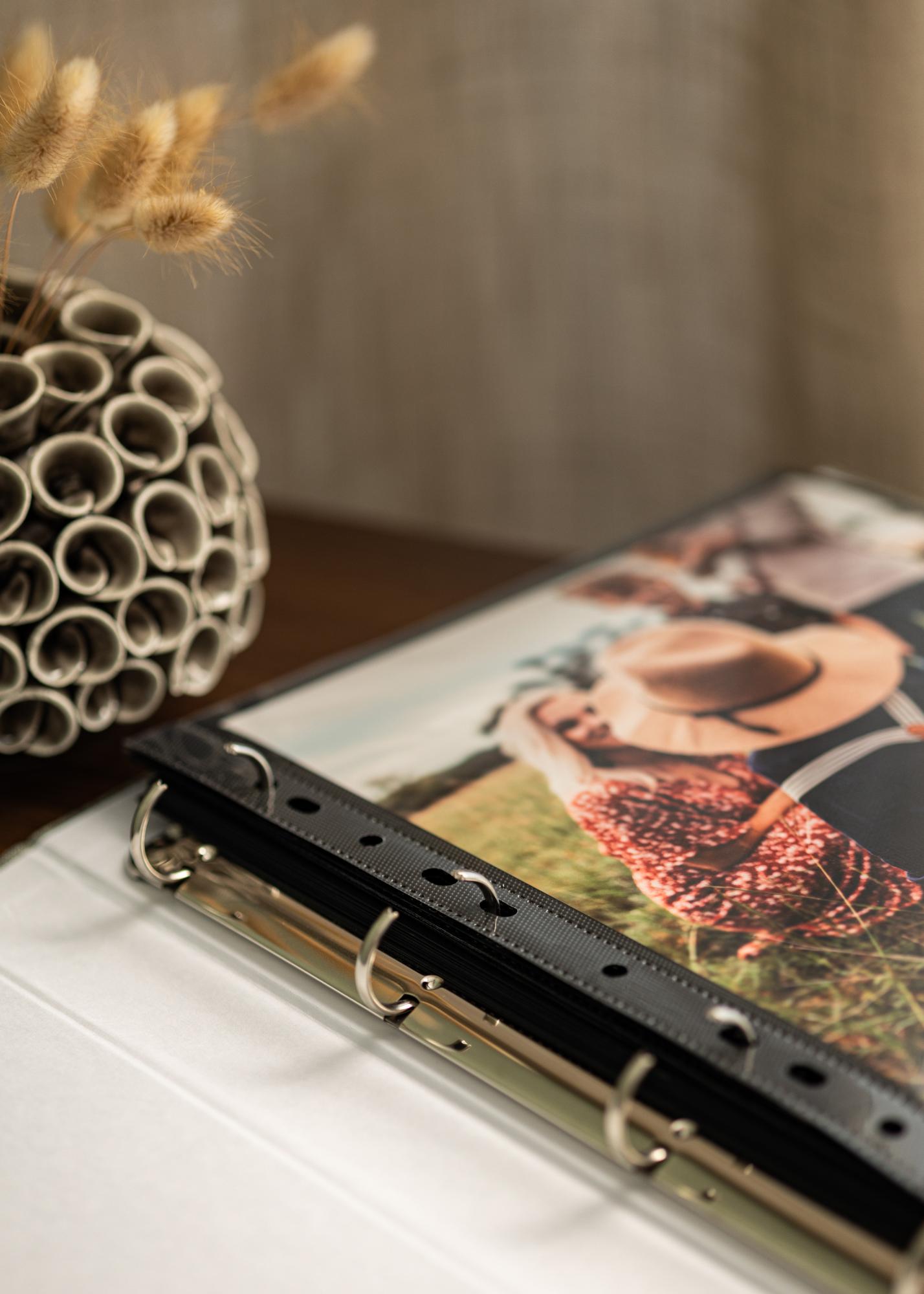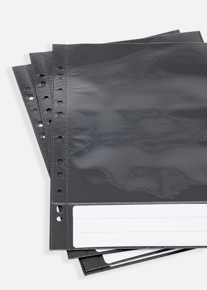Ultimate Photo Pockets 20x25 cm Portrait is a set of 5 black album pages in the size 23.5x32.5 cm. They hold a total of 10 portrait pictures in the format 20x25 cm and also have space for personal notes, perfect for writing dates, names, or other memorable details. A practical solution for organizing and preserving your photos in an elegant way.