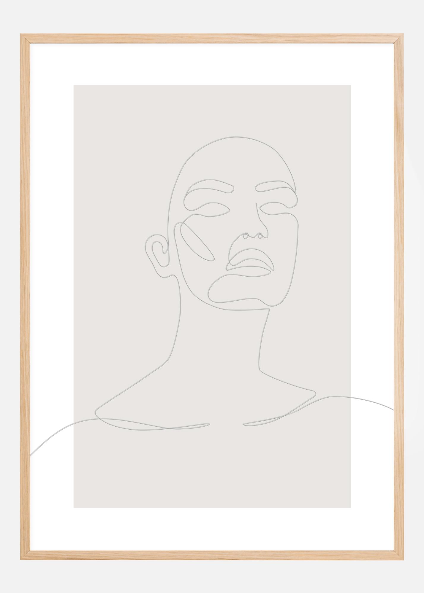 A unique abstract portrait poster of a face made up of a single line. The thin black line moves effortlessly across the page to create an entire face in one go. The soft grey background ensures you look at this image closely in order to appreciate all the details.