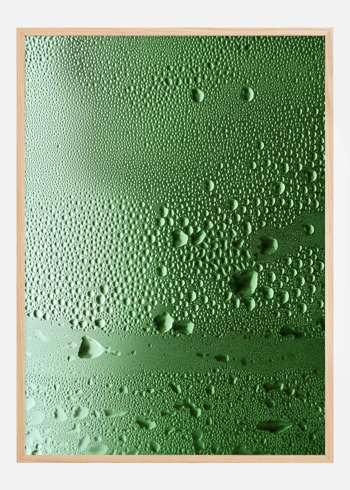 Rediscover the simple beauty of nature's elements with our poster that highlights the freshness of water droplets on a shiny surface. This artwork captures the moment when the droplets rest quietly on a vibrant green background, each reflecting the light and adding depth and texture to the simple composition. This print is a subtle reminder of life's pure necessities and nature's calm presence.