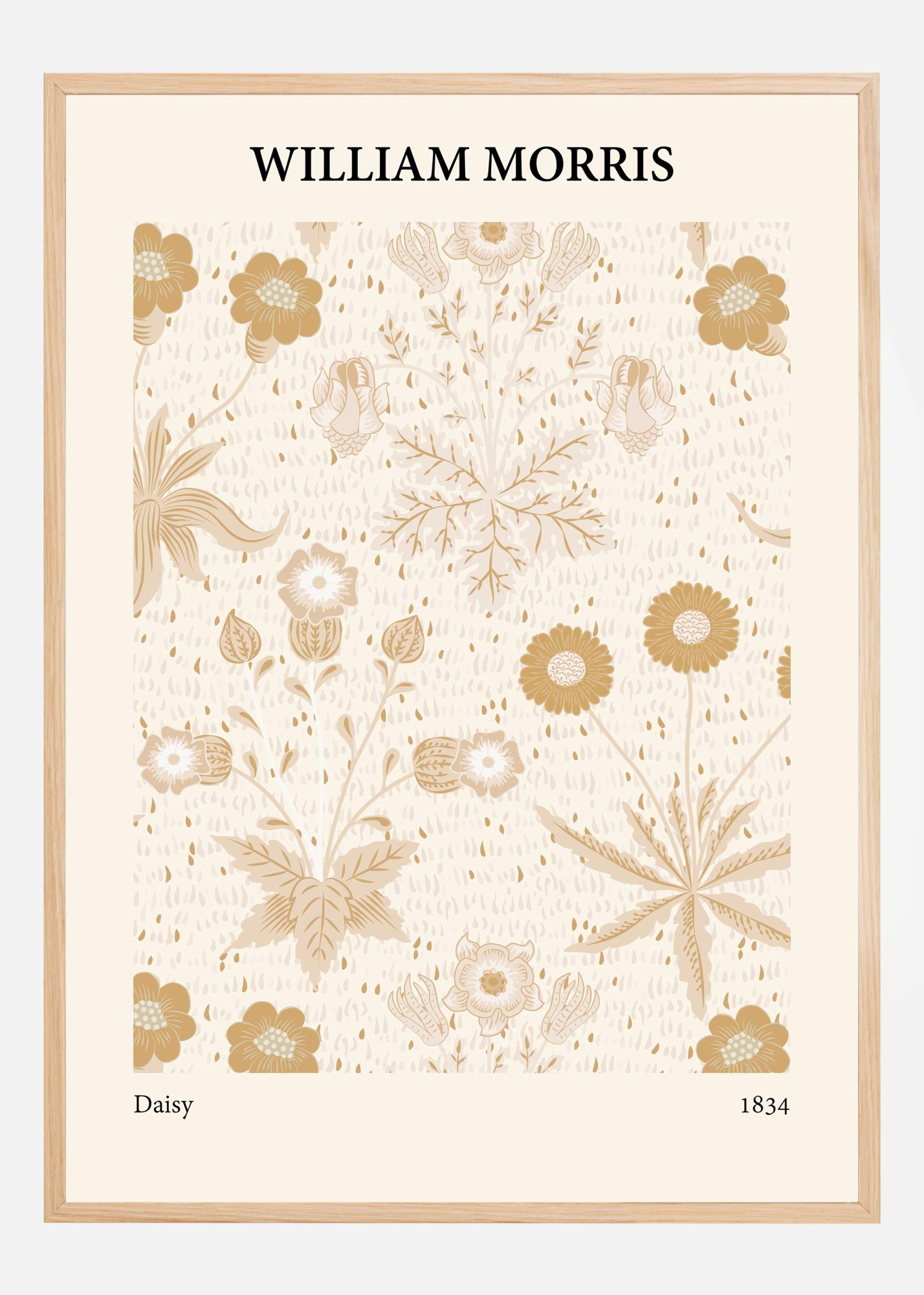 This delicate and stylish poster depicts a classic William Morris design, known for its timeless aesthetics and its place in art history. The pattern consists of a harmonious collection of flowers and foliage, presented in a soft and natural color palette. The design highlights Morris's love for nature with detailed depictions of daisies, forget-me-nots, and other botanical elements, whose placement on the paper creates a calm and balanced impression. The colors that dominate the motif are shades of beige, cream white, and various brown tones that together give a warm and welcoming feeling to any room.