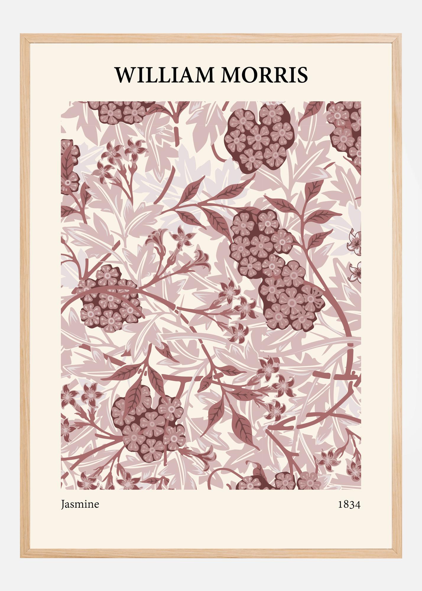 This William Morris poster, titled "Jasmine", is a sublime interpretation of nature's wonders, transformed into an elegant and detailed work of art. The pattern is a delightful composition of flowers and leaves in shades of pink and brown, recreating the warm and inviting feel of a blooming garden. Each element is meticulously crafted to capture the essence of Morris' passion for nature and design, providing a timeless impression that never goes out of style.
