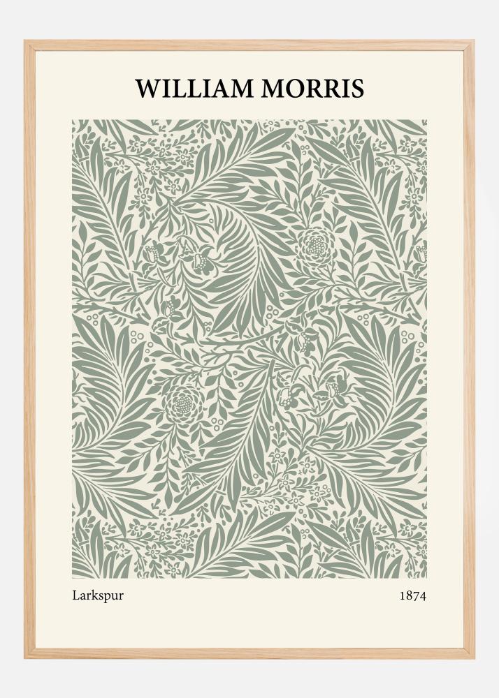 This William Morris poster, titled "Larkspur" from the year 1874, showcases a swirling sea of flora in an enchanting and intricate design. Each element in this detailed pattern is extensively intertwined, creating a vibrant and captivating effect. This print would be an exquisite detail in any home that values craftsmanship and the nature-inspired aesthetics of the Arts and Crafts movement.