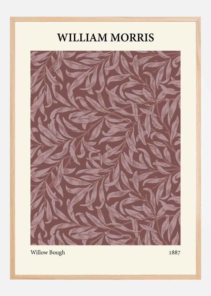 This distinctive poster highlights the beauty of William Morris' "Willow Bough" from 1887, here presented in warm and rich reddish-brown tones reminiscent of autumn leaves or cinnamon. The dancing willow leaves against the deep background give a sense of both movement and depth, making this one of Morris' most eye-catching patterns.