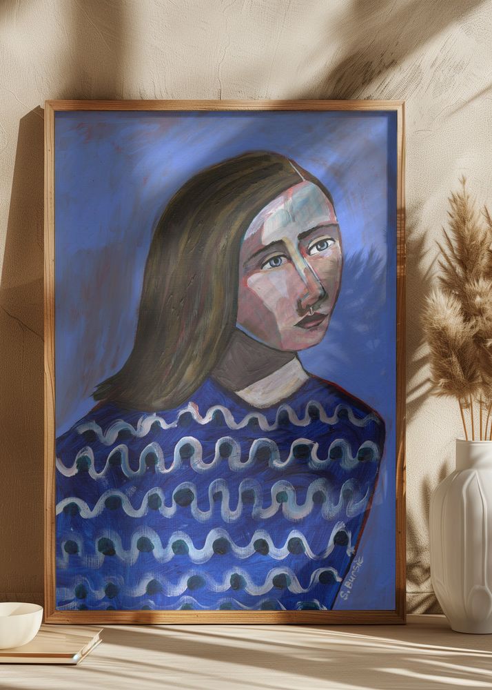 https://www.bgastore.uk/woman-in-blue-sweater-naive-portrait-figurative-poster_40x60-cm