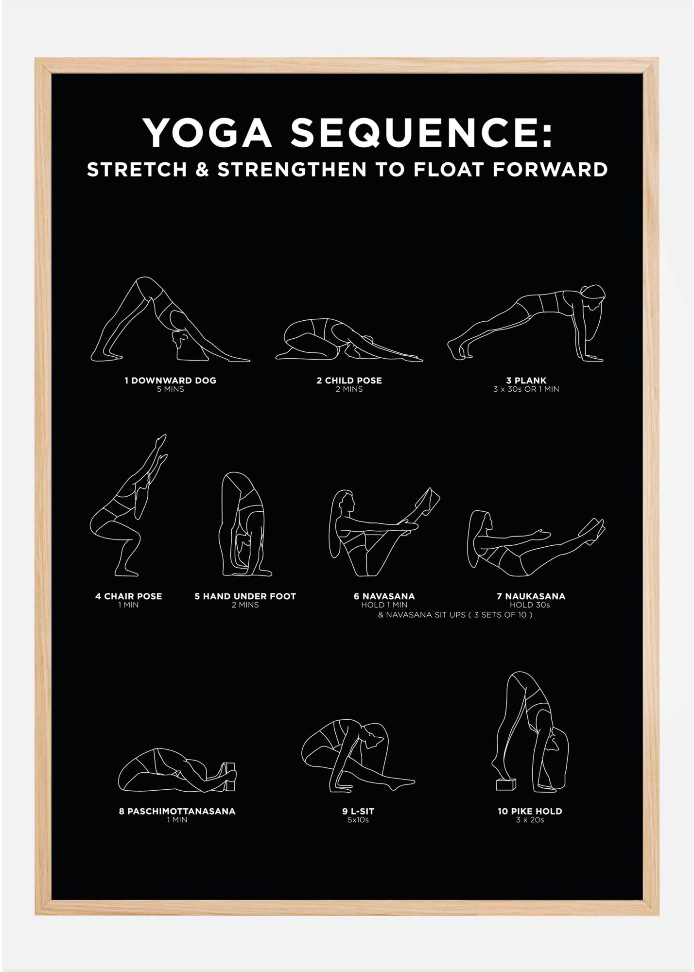 Yoga Sequence - Stretch & Strengthen To Float Forward - Black Poster