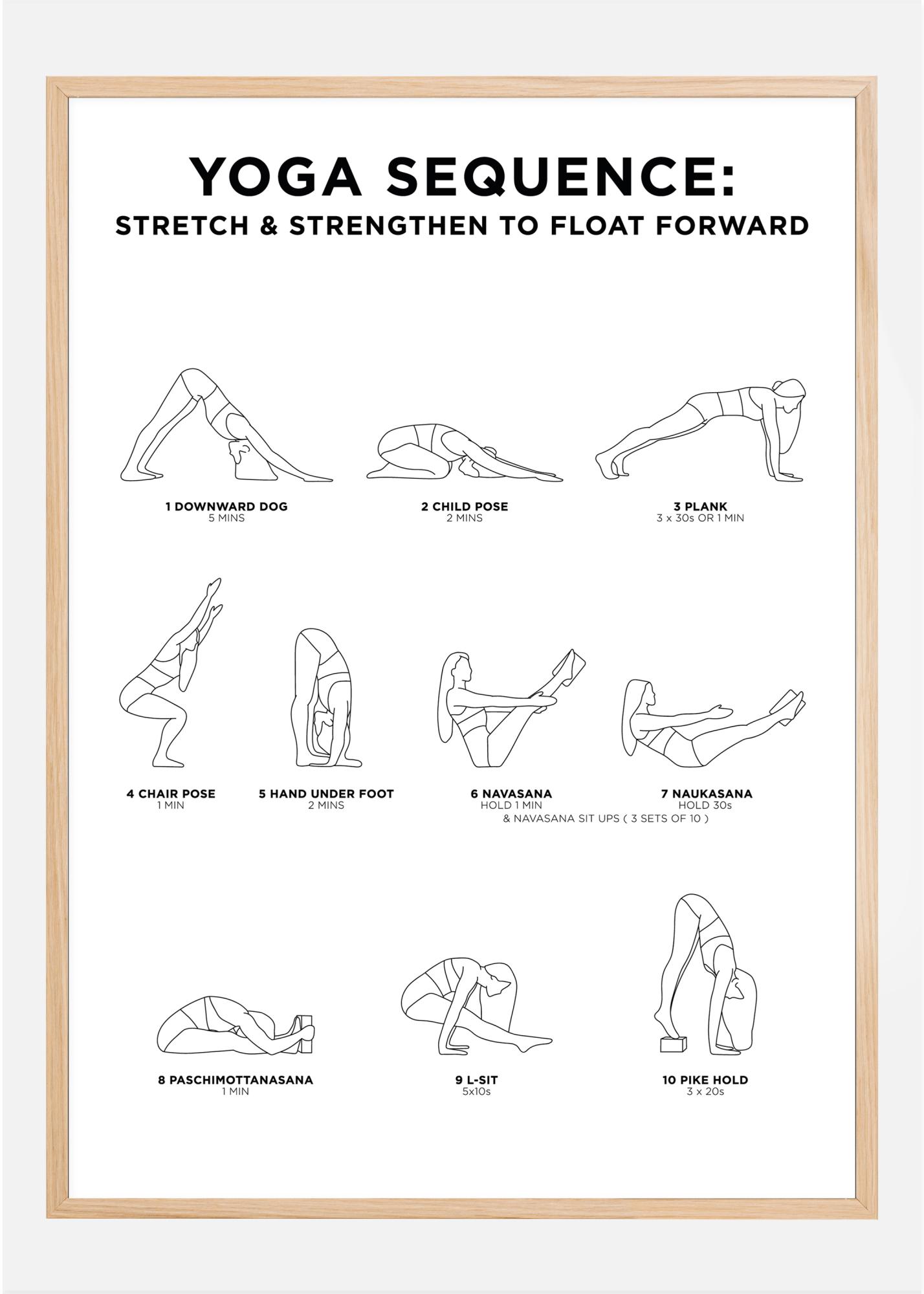 Yoga Sequence - Stretch & Strengthen To Float Forward - White Poster